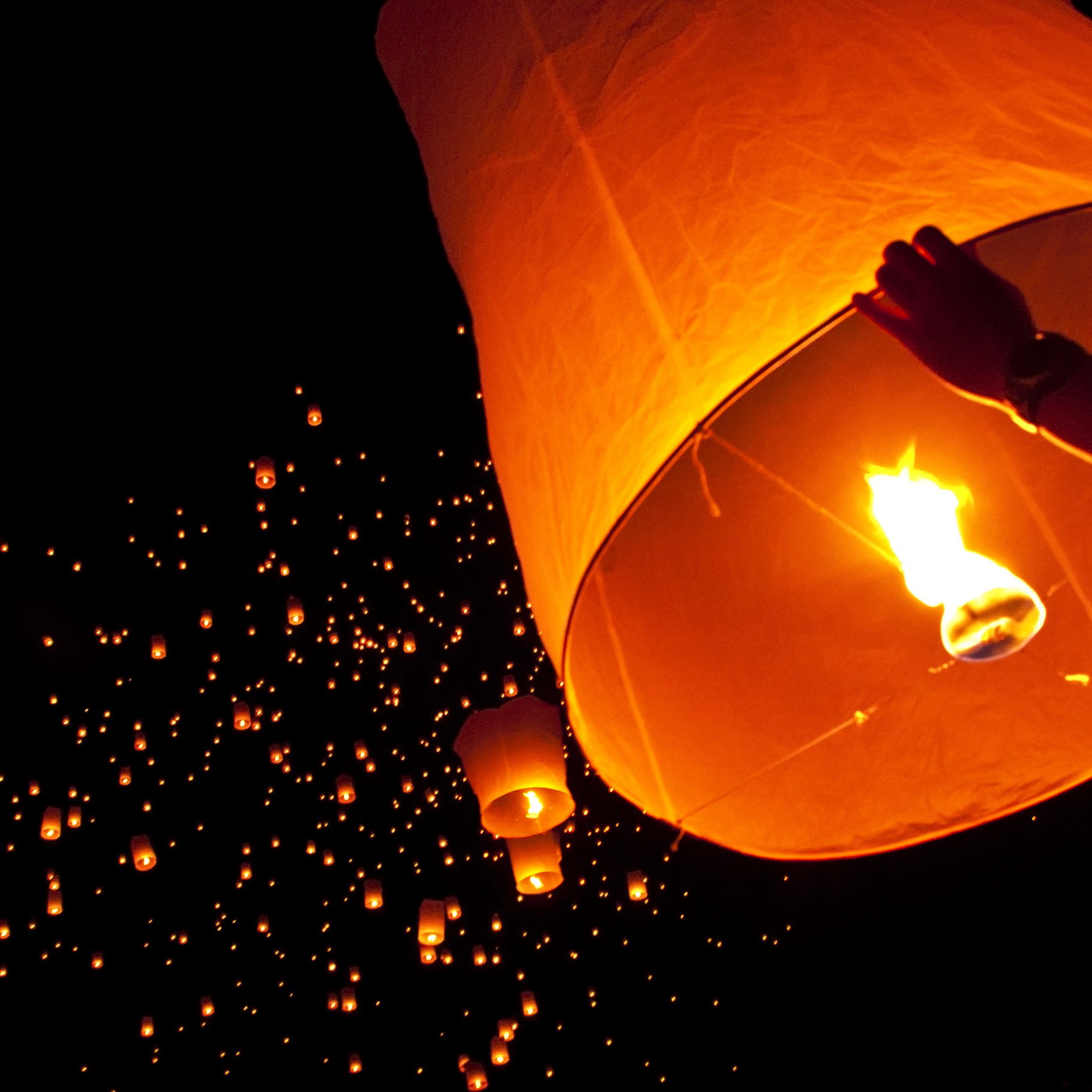 On the full moon of the twelfth lunar month, the skies above Chiang Mai, Thailand are lit up with the light of a thousand lanterns. It’s a truly magical sight! The khom loi, or sky lanterns, are traditionally made from thin sheets of rice paper and represent a special wish or prayer for good luck. The Yi Peng lantern festival coincides with the more widely known Loy Krathong festival where locals take to Thailand’s lakes and rivers to float colorful baskets made of banana stalks and flowers.